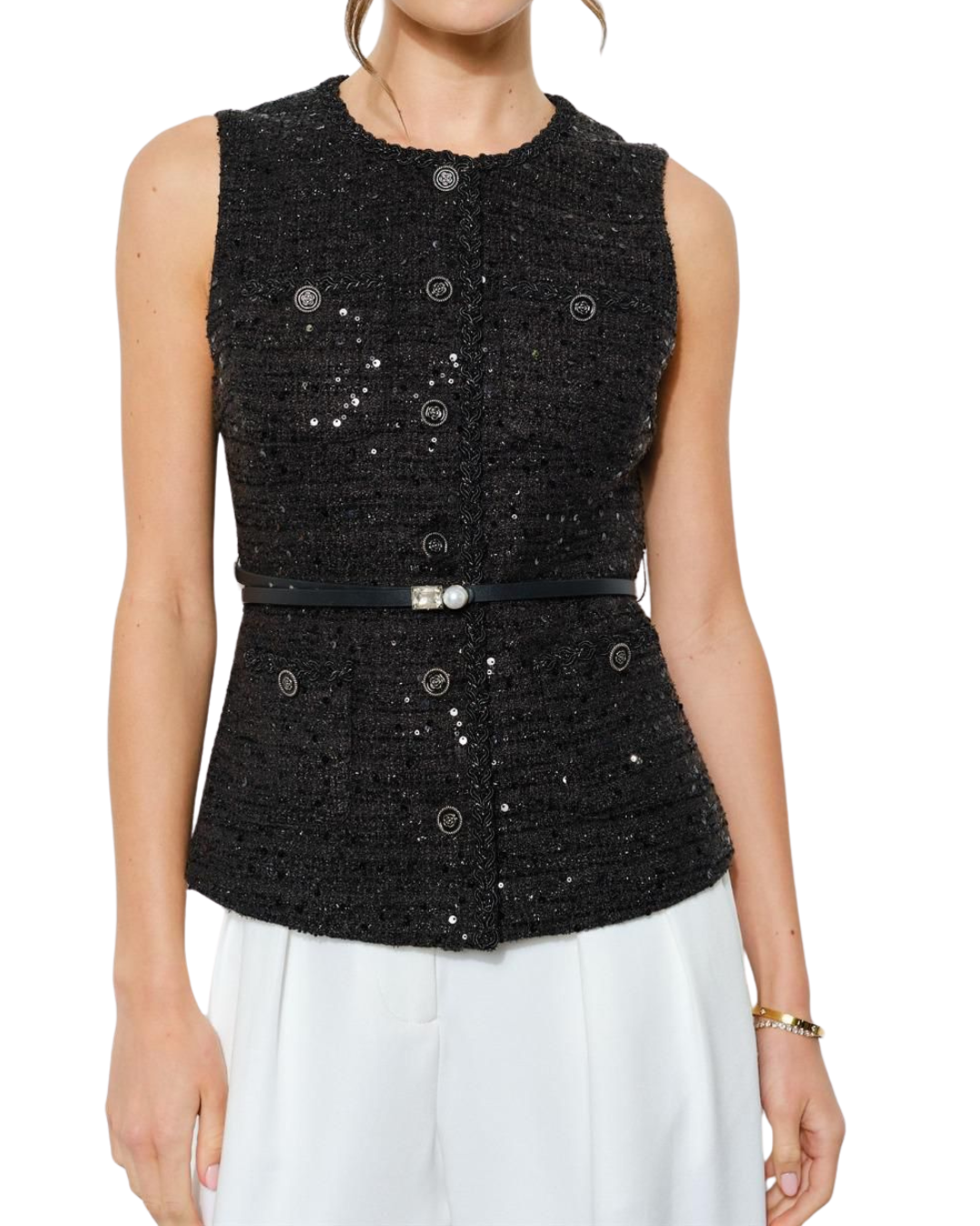 BLUSA MANGA CORTA CON BRILLOS NEGRA