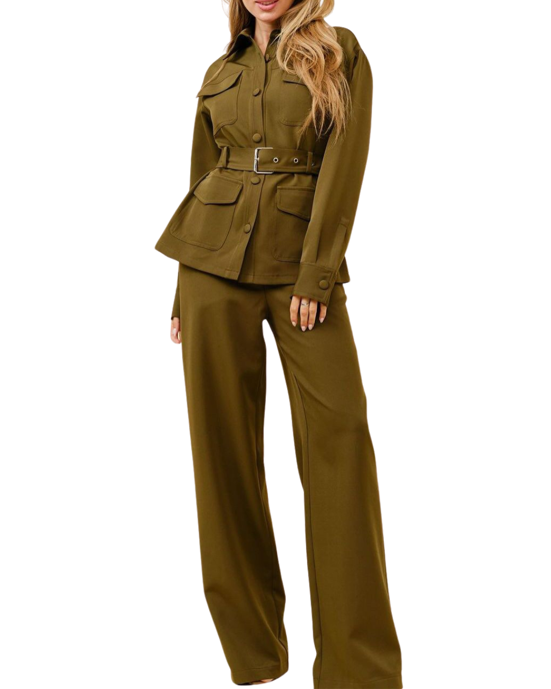 SET BLUSA MANGA LARGA Y PANTALON CAFE