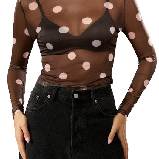 BLUSA MESH CAFÉ CON PUNTOS BLANCOS