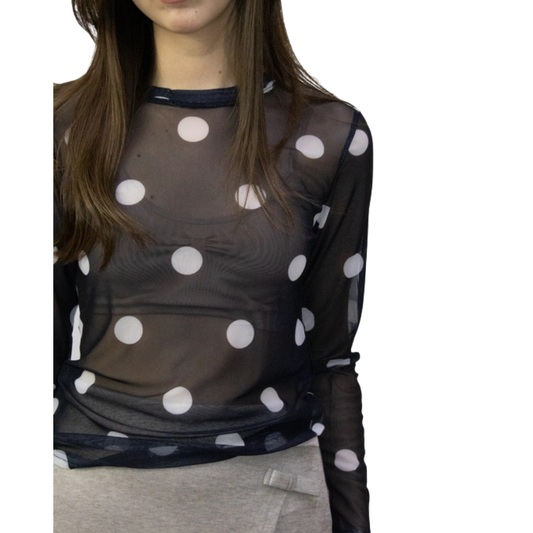 BLUSA MESH NEGRA CON PUNTOS BLANCOS