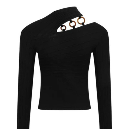 BLUSA DE PUNTO NEGRA CON AROS EN CUELLO