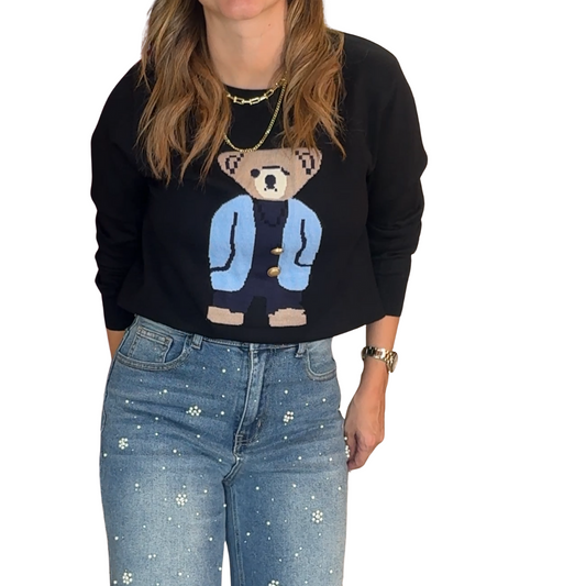 SUÉTER AZUL MARINO CON CORAZONES CON PERLAS