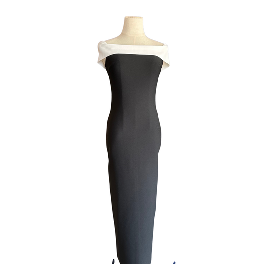 VESTIDO MIDI BLACK N WHITE MANGAS EN LOS COSTADOS