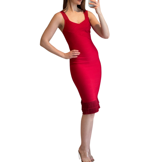 VESTIDO MIDI ROJO CON FLECOS