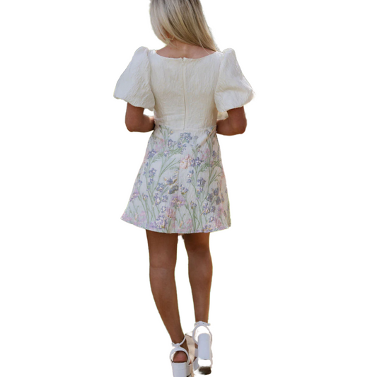 VESTIDO CORTO FLOREADO BEIGE