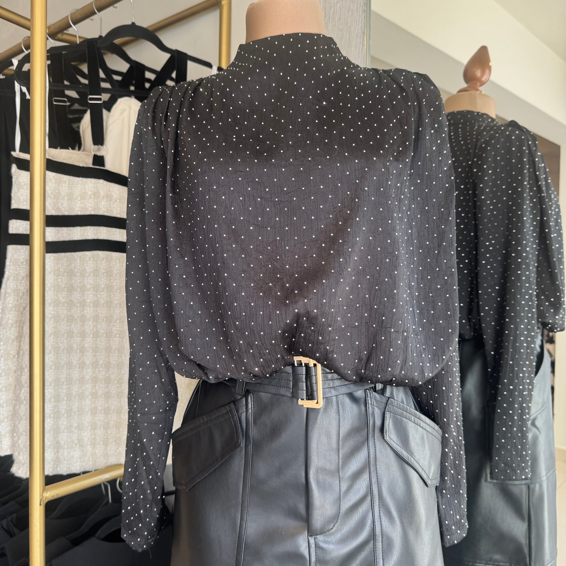 BLUSA MANGA LARGA CON BRILLOS NEGRA
