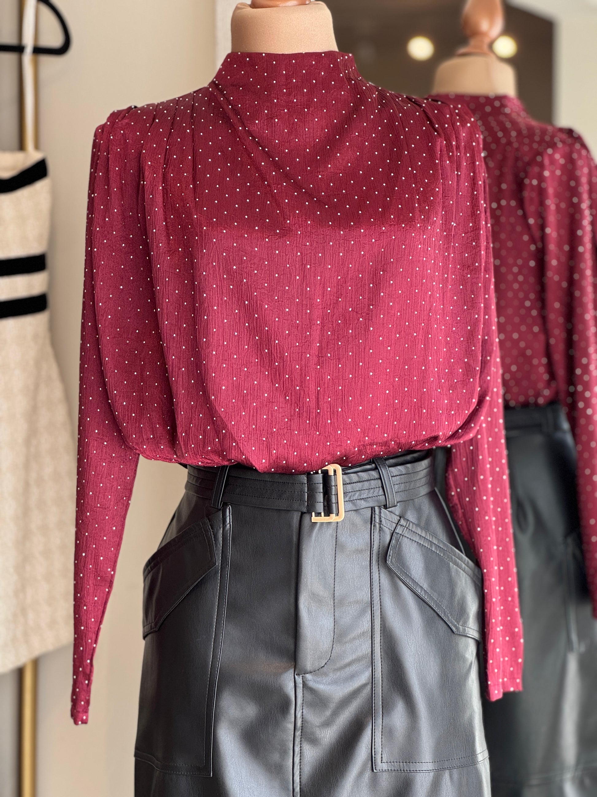BLUSA MANGA LARGA CON BRILLOS VINO