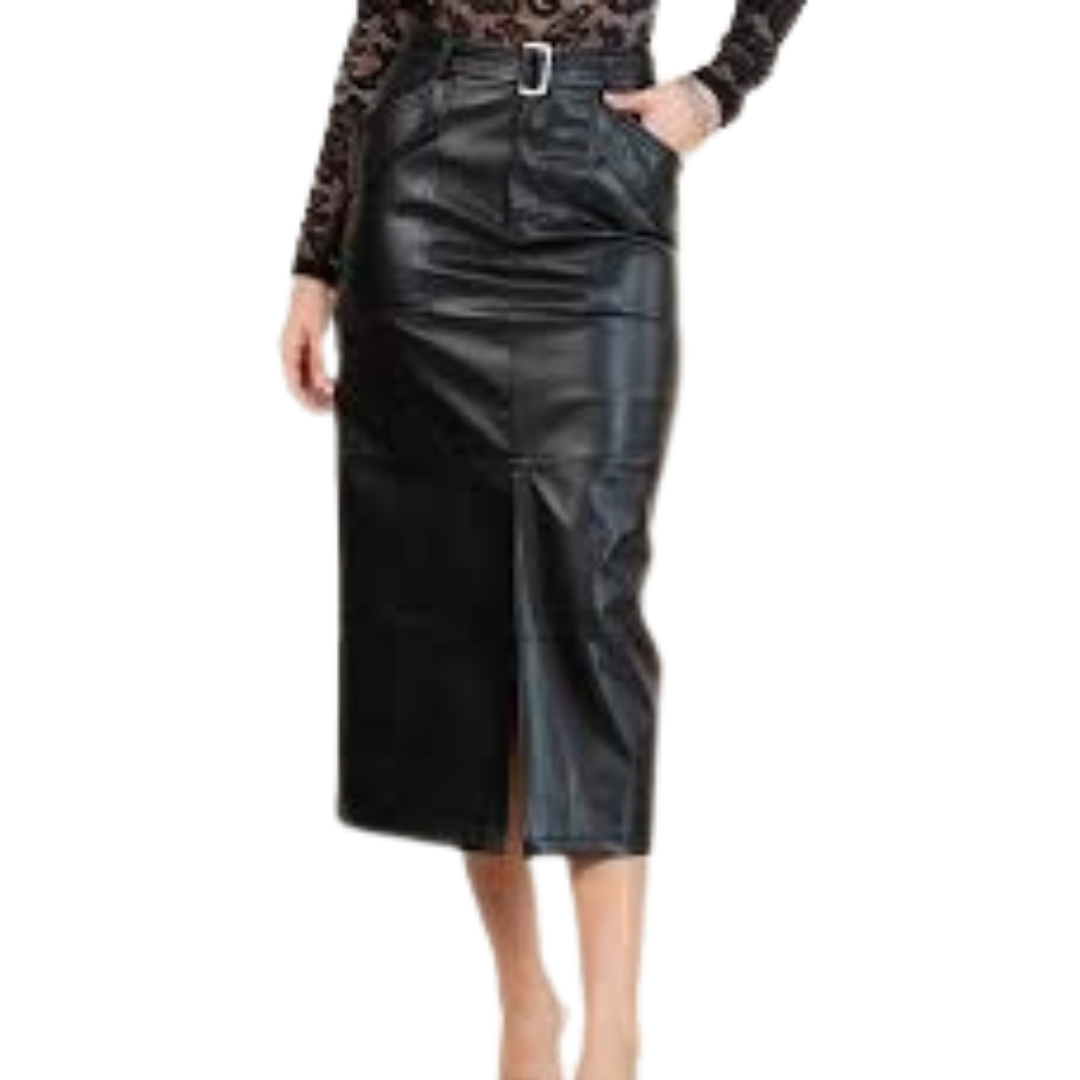 FALDA NEGRA DE CUERO CON CINTO CON BOLSAS