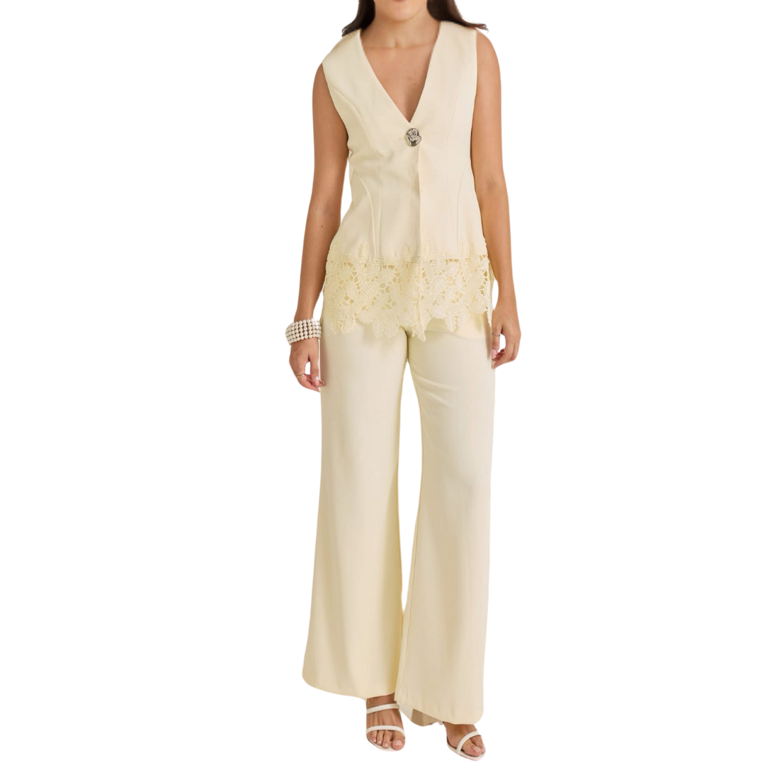SET AMARILLO CHALECO CON ENCAJE Y PANTALÓN