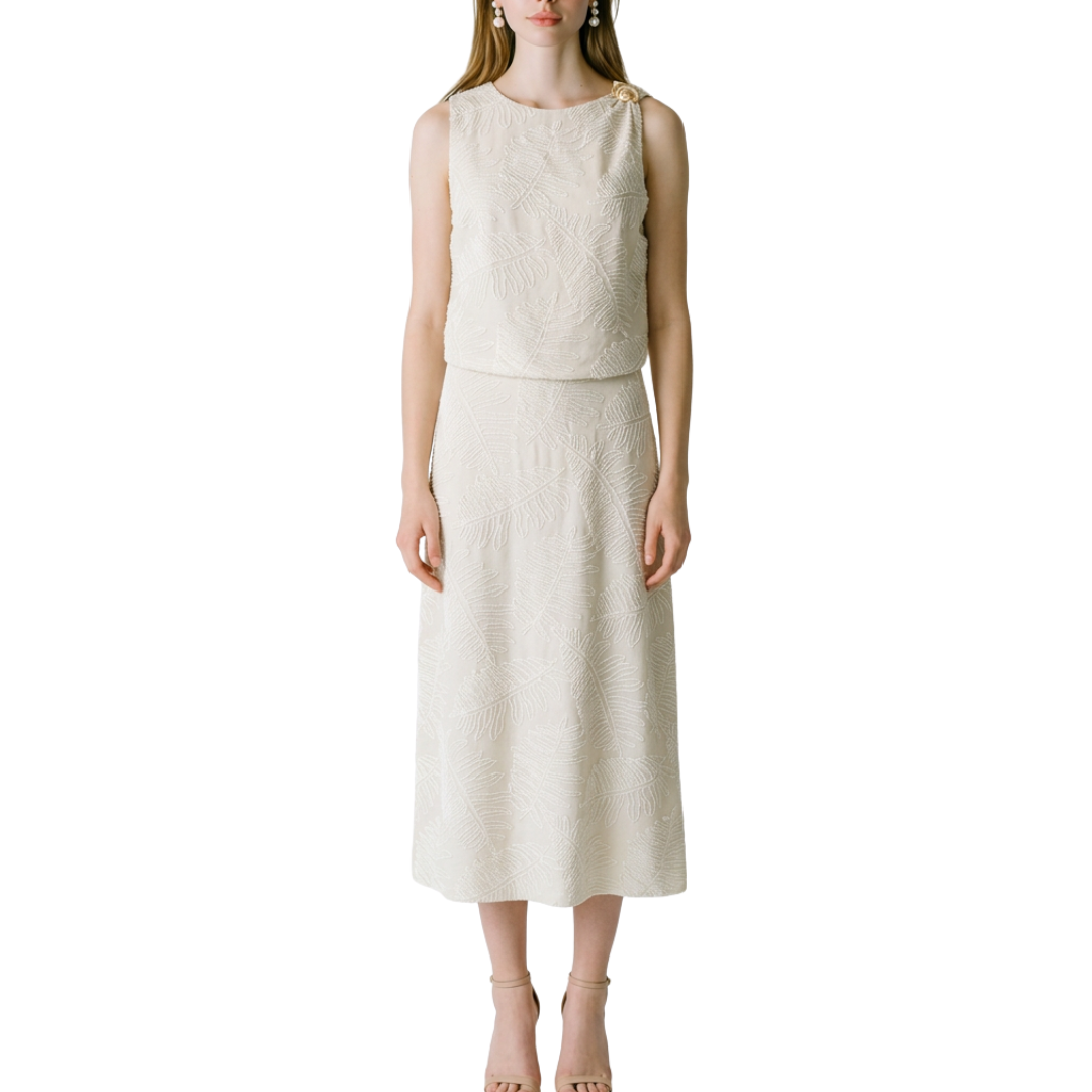 SET FALDA Y BLUSA TIPO LINO BEIGE CHALECO CON BOTÓN