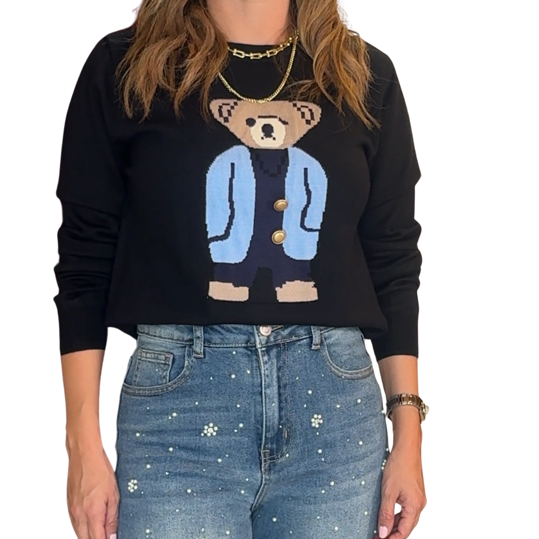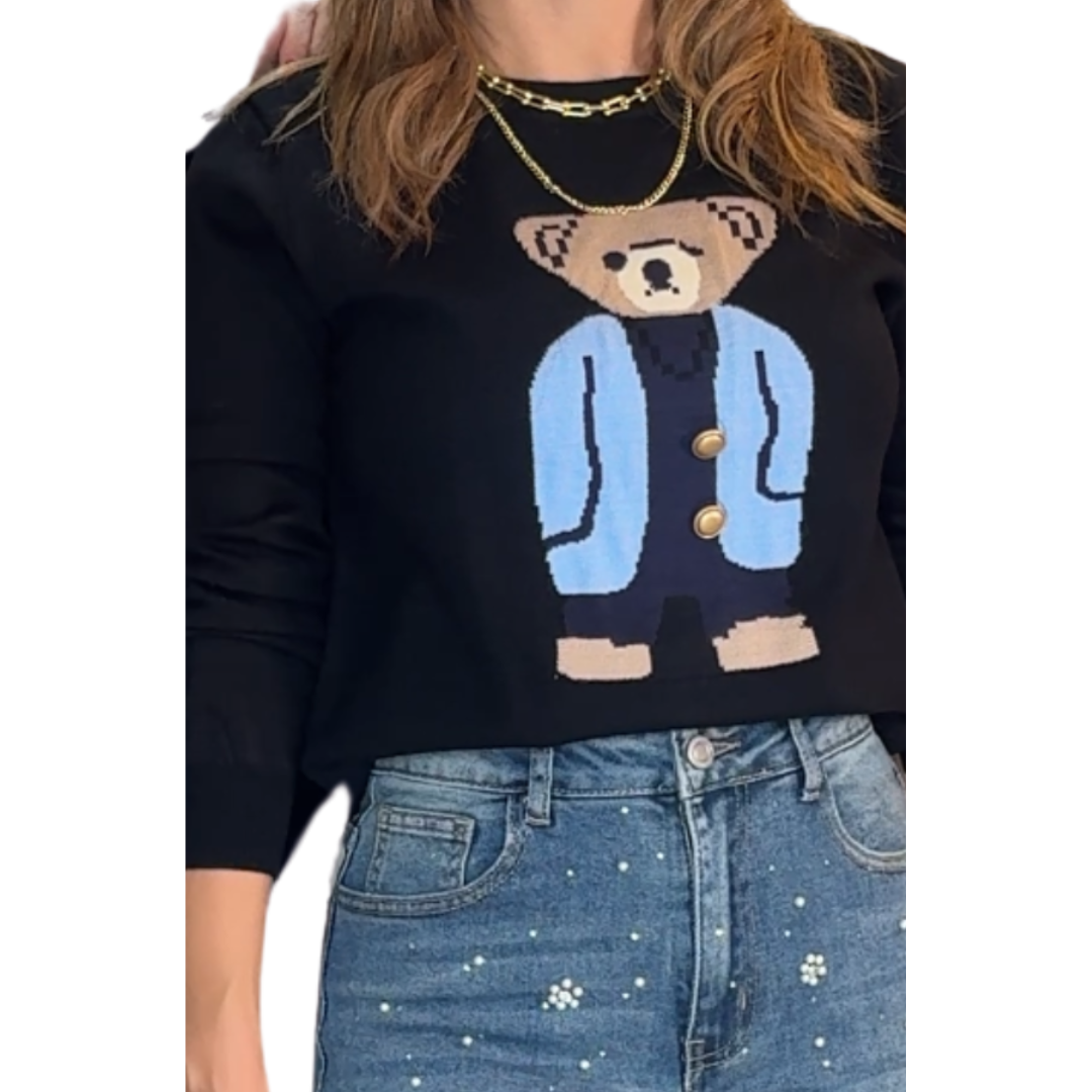 SUÉTER NEGRO CON OSITO CELESTE