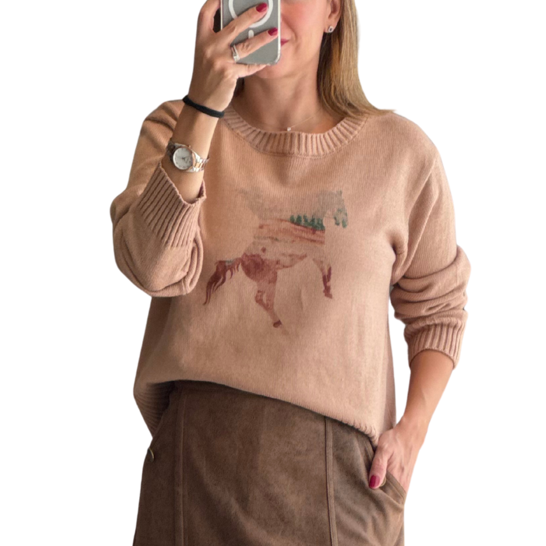 SUETER TIPO TEJIDO CAFE DIBUJO DE CABALLO